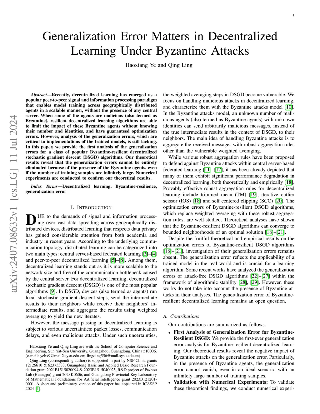 Generalization Error Matters in Decentralized Learning Under Byzantine