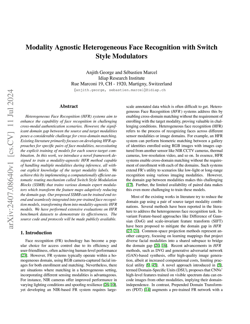 Modality Agnostic Heterogeneous Face Recognition with Switch Style