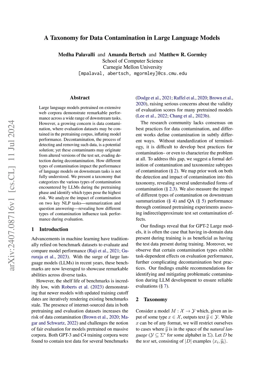 A Taxonomy for Data Contamination in Large Language Models