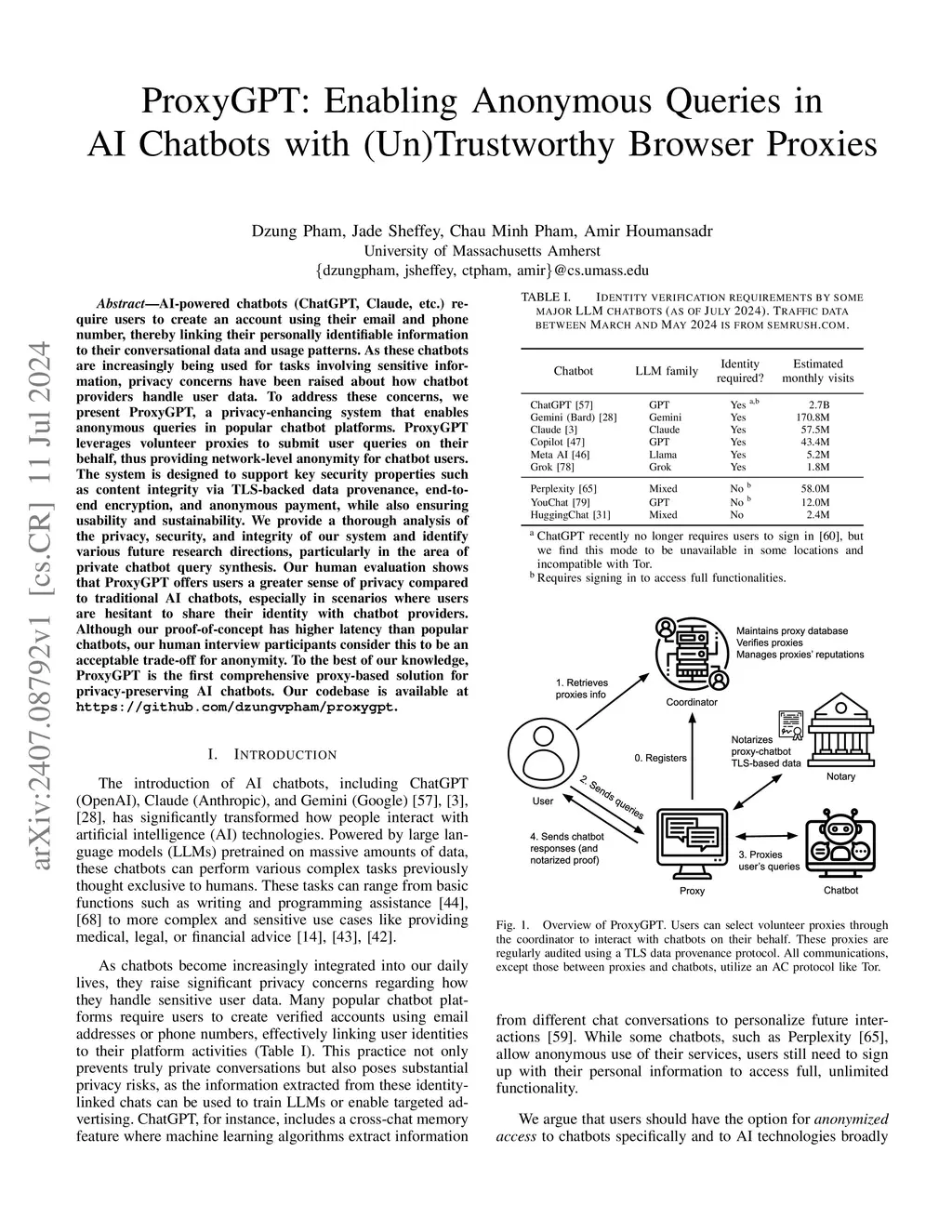 ProxyGPT: Enabling User Anonymity in LLM Chatbots via (Un)Trustworthy Volunteer Proxies