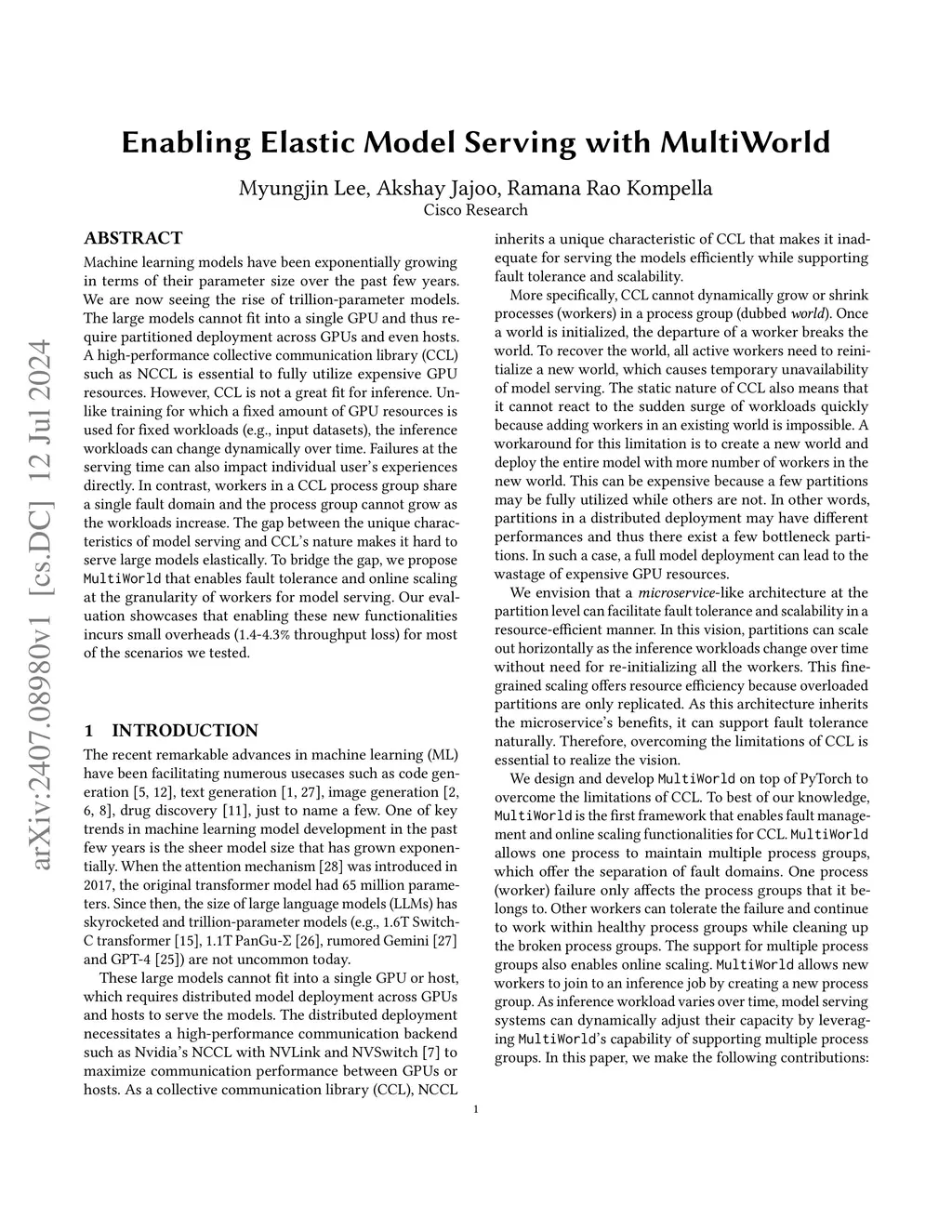 Enabling Elastic Model Serving with MultiWorld