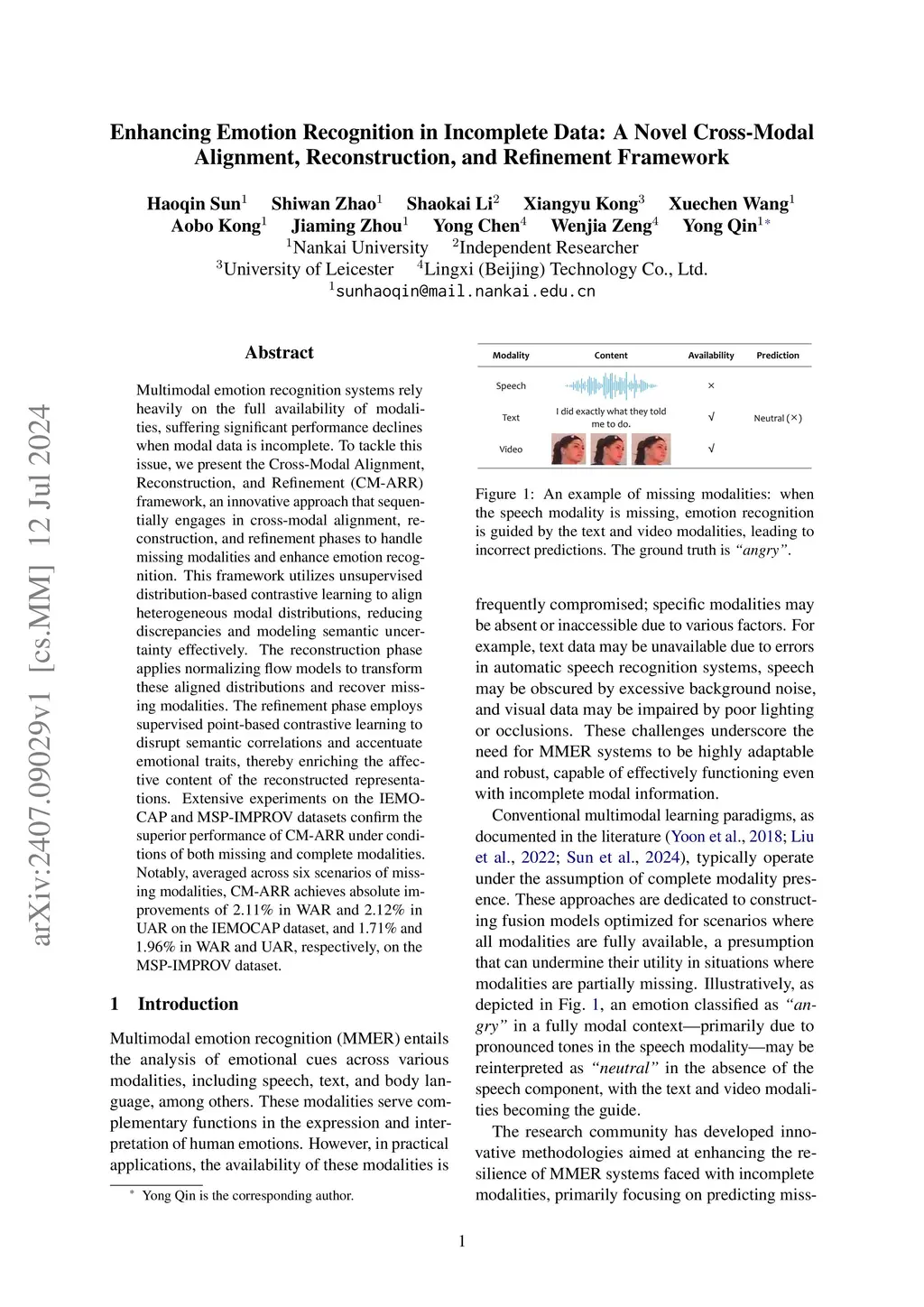 Enhancing Emotion Recognition in Incomplete Data: A Novel Cross-Modal