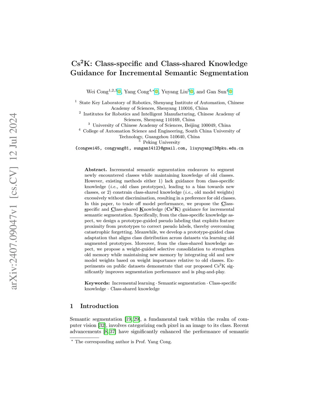 Cs2K: Class-specific and Class-shared Knowledge Guidance for Incremental