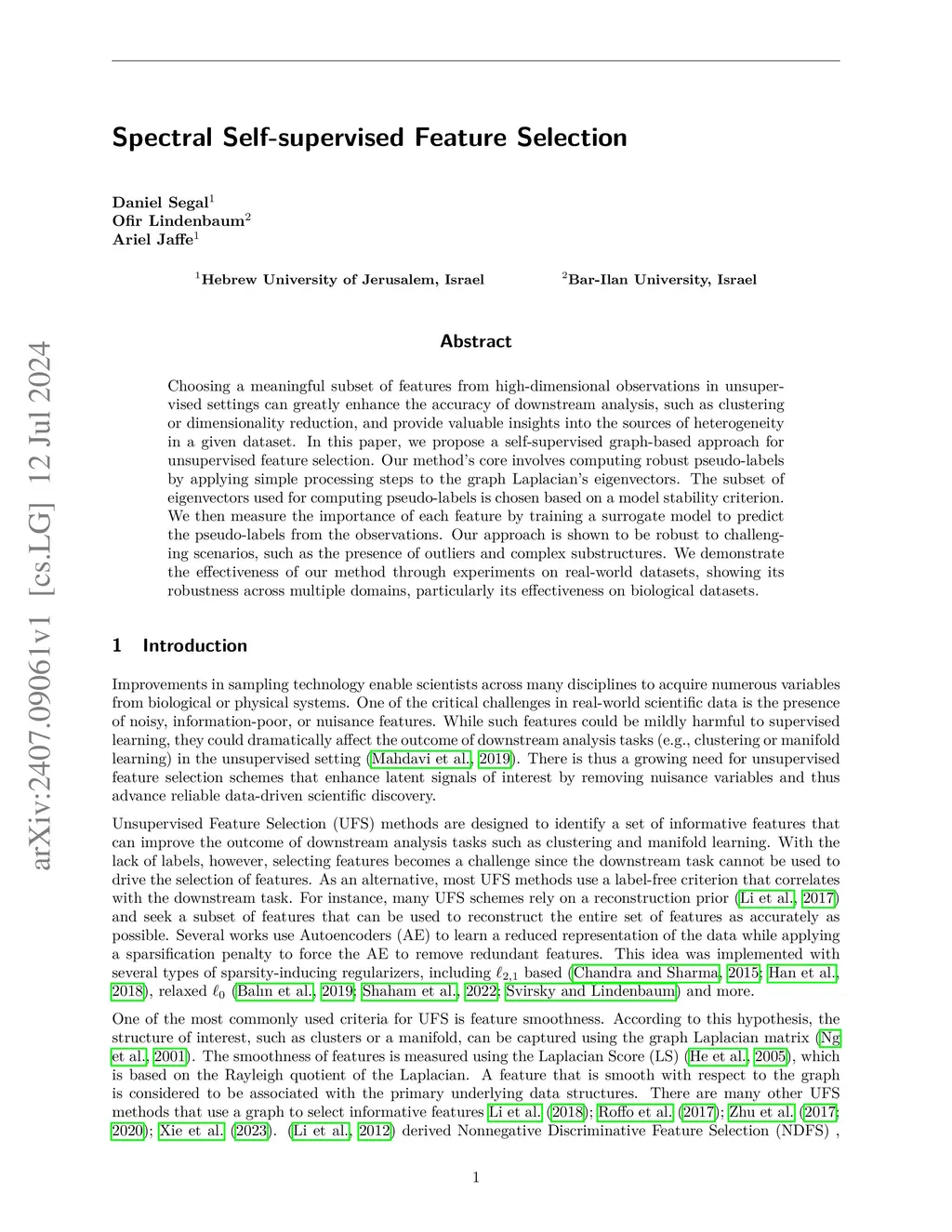 Spectral Self-supervised Feature Selection