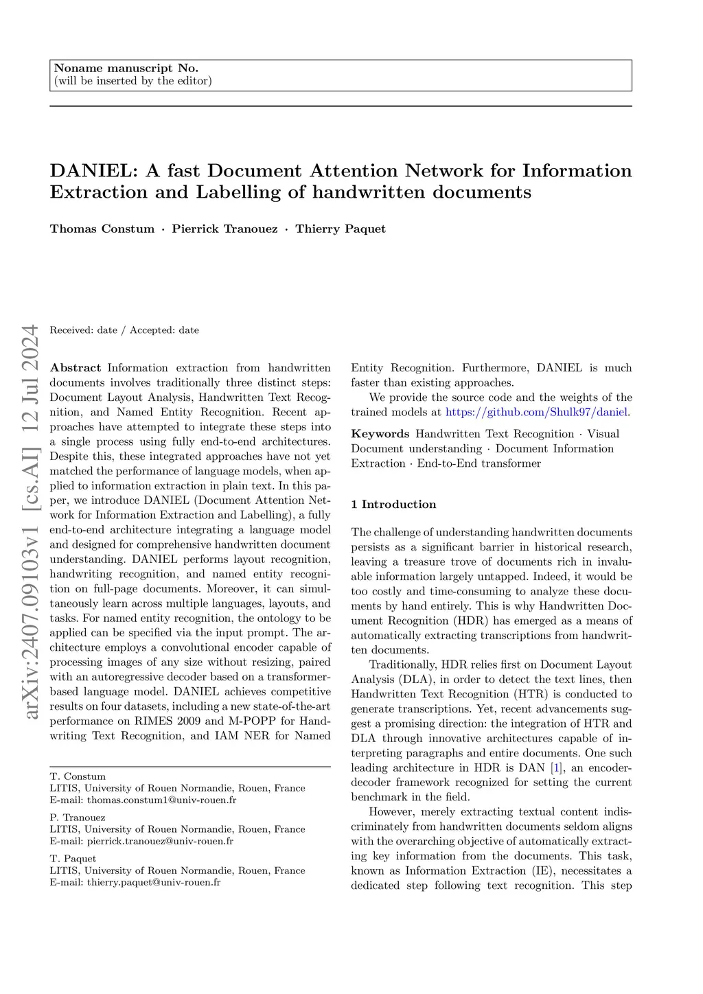 DANIEL: A fast Document Attention Network for Information Extraction and