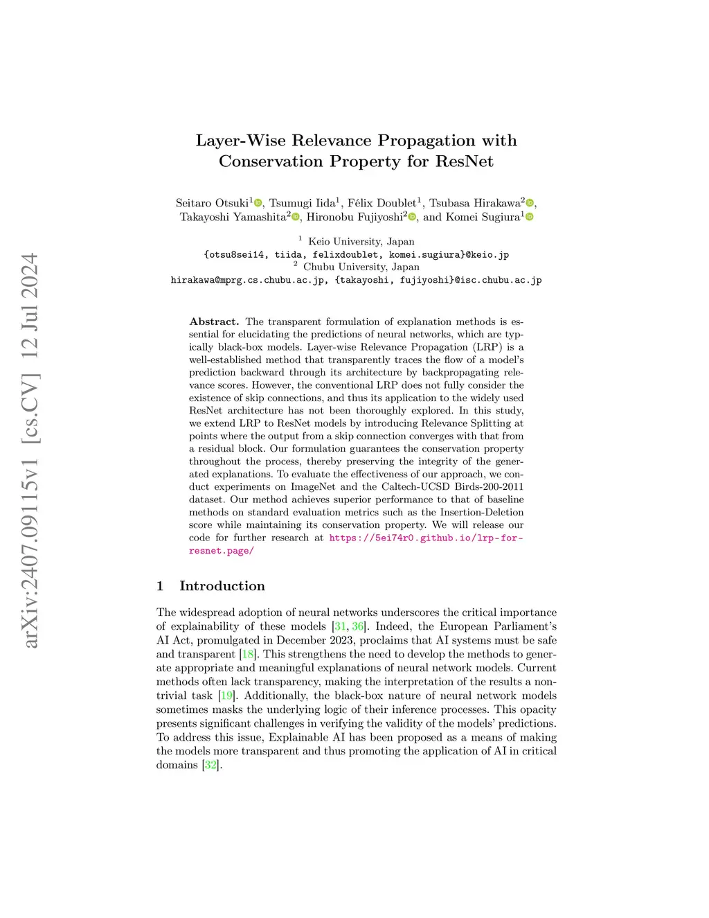 Layer-Wise Relevance Propagation with Conservation Property for ResNet