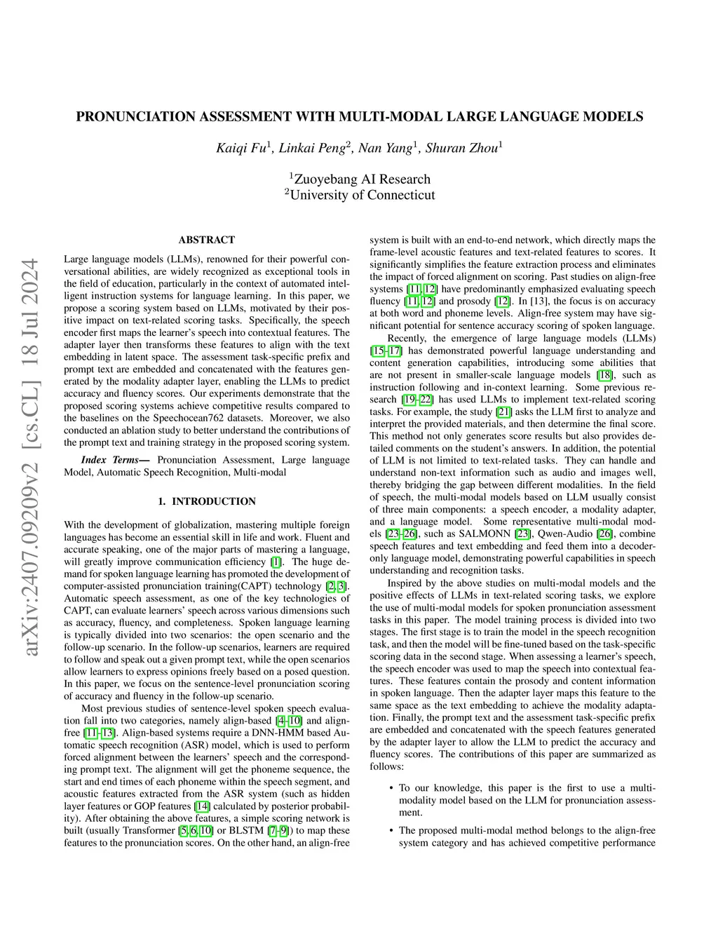 Pronunciation Assessment with Multi-modal Large Language Models