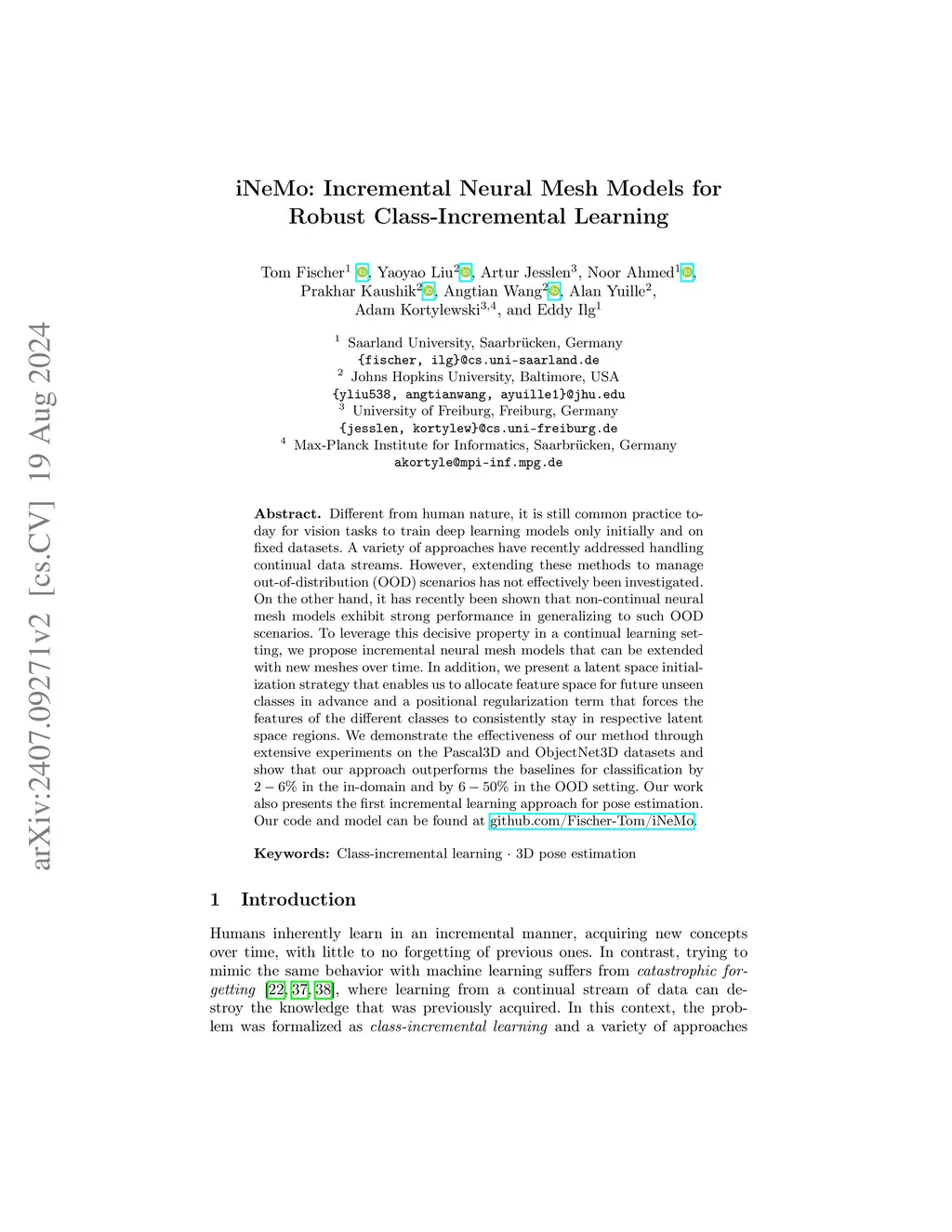 iNeMo: Incremental Neural Mesh Models for Robust Class-Incremental