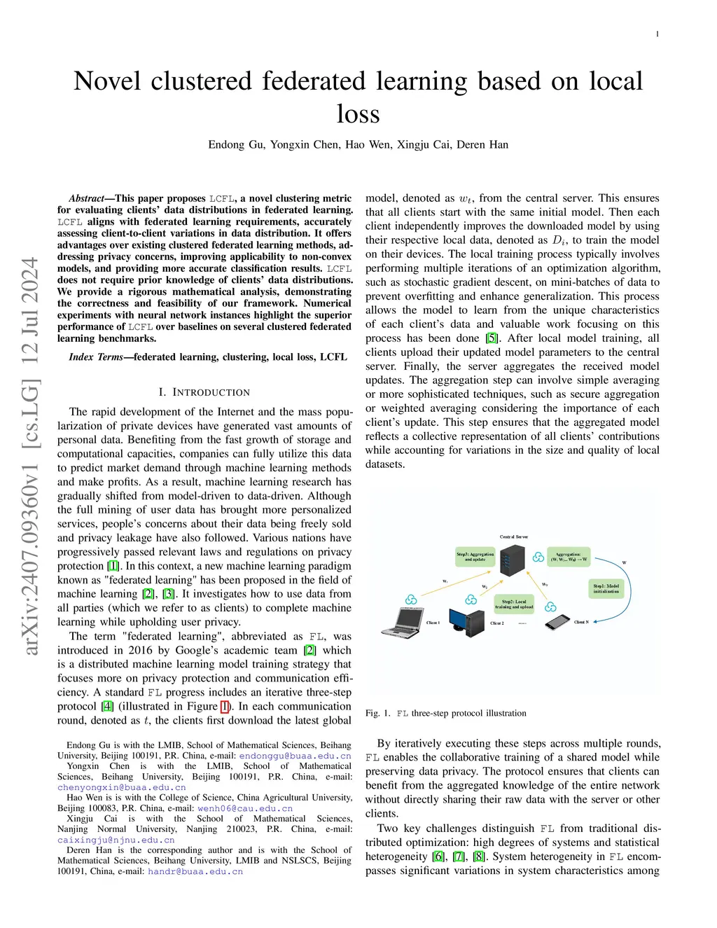 Novel clustered federated learning based on local loss