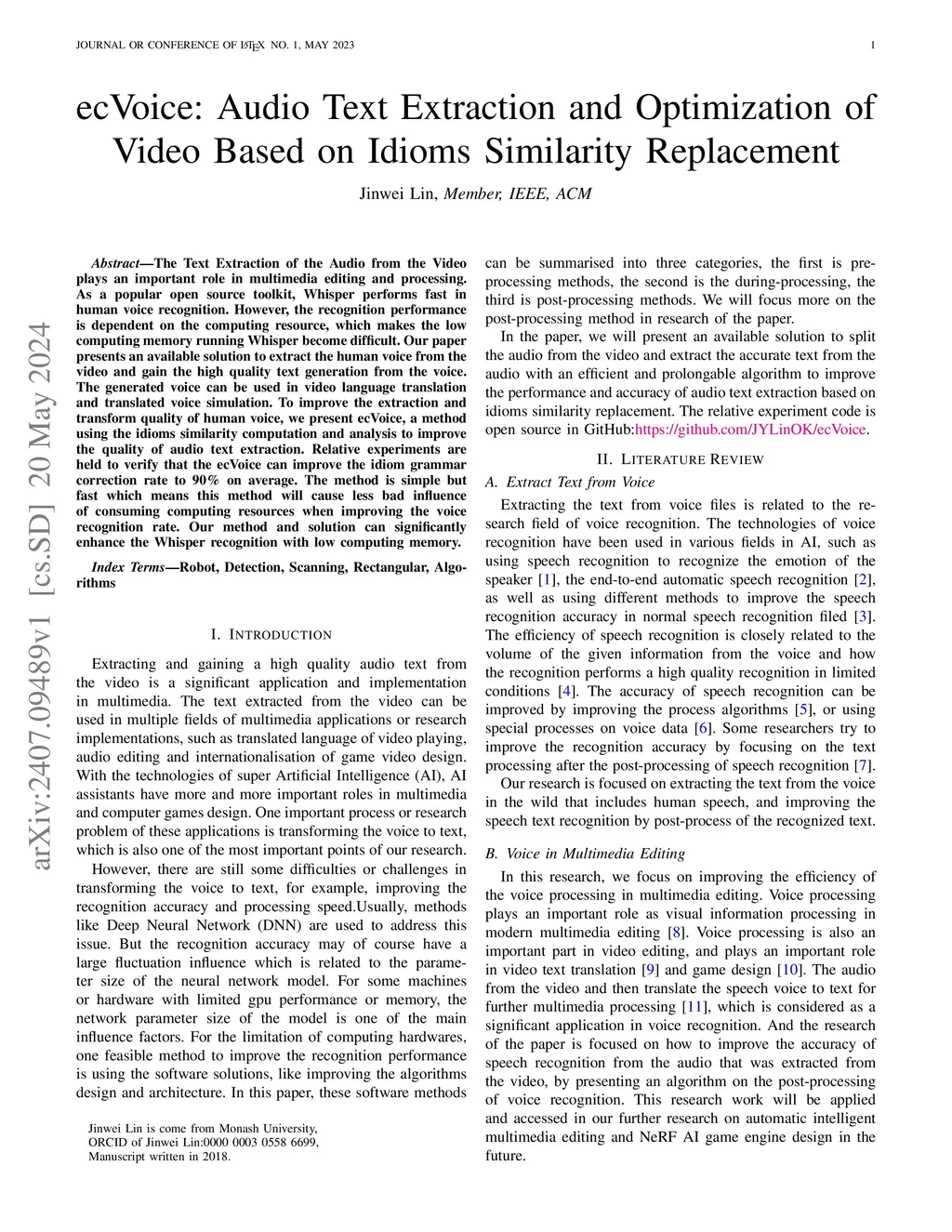 ecVoice: Audio Text Extraction and Optimization of Video Based on Idioms