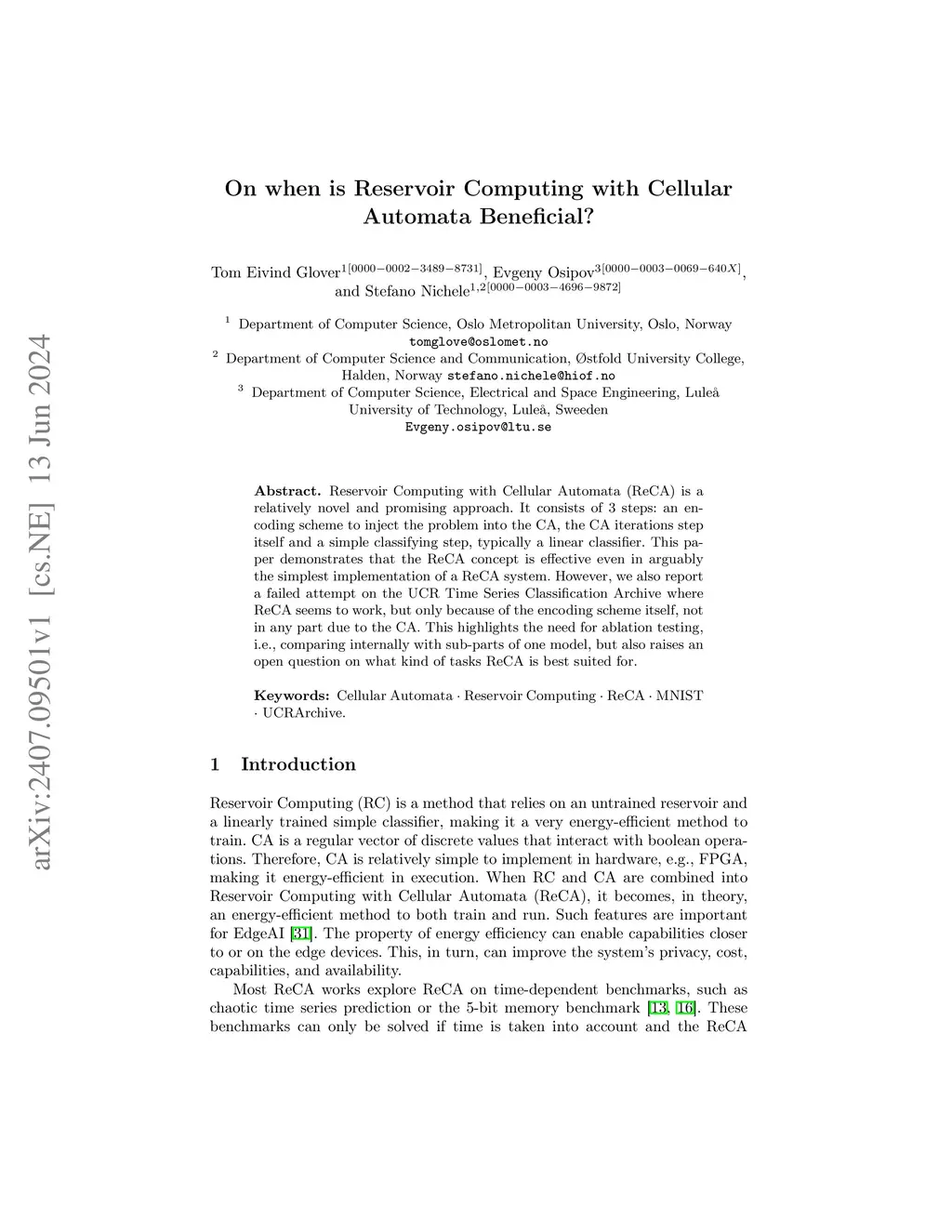Reservoir Computing with Cellular Automata (ReCA) is a relatively novel and promising approach. It consists of 3 steps: an encoding scheme to inject the problem into the CA, the CA iterations step itself and a simple classifying step, typically a linear classifier. This paper demonstrates that the ReCA concept is effective even in arguably the simplest implementation of a ReCA system. However, we also report a failed attempt on the UCR Time Series Classification Archive where ReCA seems to work, but only because of the encoding scheme itself, not in any part due to the CA. This highlights the need for ablation testing, i.e., comparing internally with sub-parts of one model, but also raises an open question on what kind of tasks ReCA is best suited for.