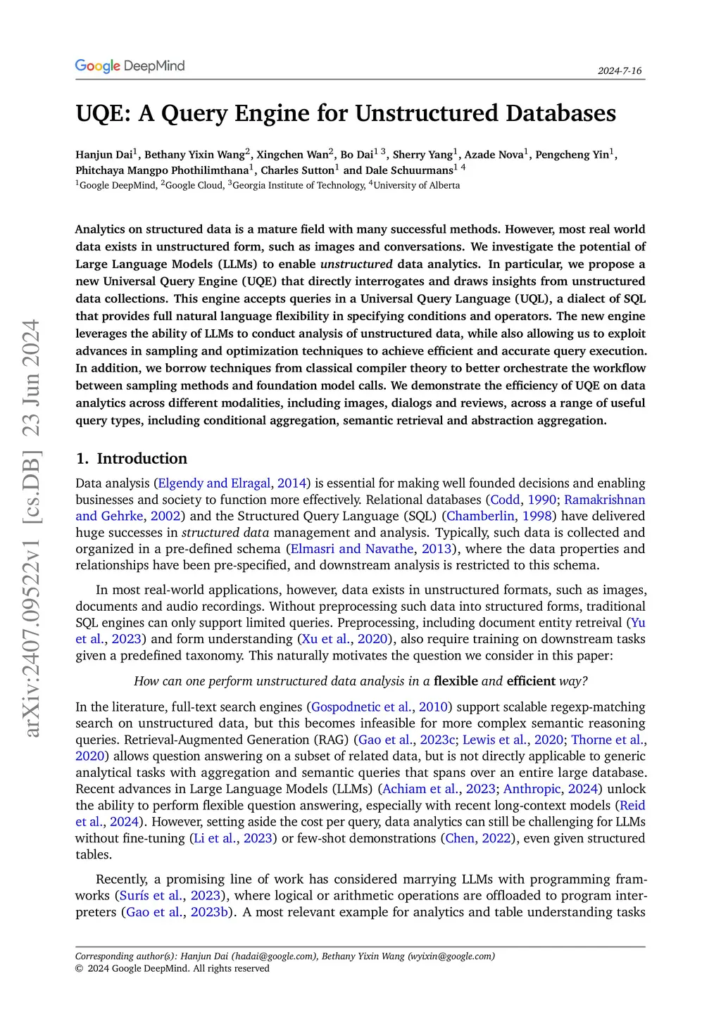 Analytics on structured data is a mature field with many successful methods. However, most real world data exists in unstructured form, such as images and conversations. We investigate the potential of Large Language Models (LLMs) to enable unstructured data analytics. In particular, we propose a new Universal Query Engine (UQE) that directly interrogates and draws insights from unstructured data collections. This engine accepts queries in a Universal Query Language (UQL), a dialect of SQL that provides full natural language flexibility in specifying conditions and operators. The new engine leverages the ability of LLMs to conduct analysis of unstructured data, while also allowing us to exploit advances in sampling and optimization techniques to achieve efficient and accurate query execution. In addition, we borrow techniques from classical compiler theory to better orchestrate the workflow between sampling methods and foundation model calls. We demonstrate the efficiency of UQE on data analytics across different modalities, including images, dialogs and reviews, across a range of useful query types, including conditional aggregation, semantic retrieval and abstraction aggregation.