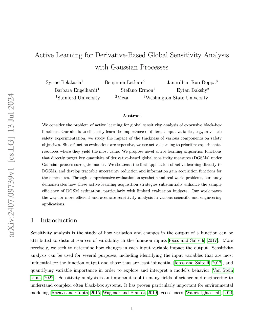 We consider the problem of active learning for global sensitivity analysis of expensive black-box functions. Our aim is to efficiently learn the importance of different input variables, e.g., in vehicle safety experimentation, we study the impact of the thickness of various components on safety objectives. Since function evaluations are expensive, we use active learning to prioritize experimental resources where they yield the most value. We propose novel active learning acquisition functions that directly target key quantities of derivative-based global sensitivity measures (DGSMs) under Gaussian process surrogate models. We showcase the first application of active learning directly to DGSMs, and develop tractable uncertainty reduction and information gain acquisition functions for these measures. Through comprehensive evaluation on synthetic and real-world problems, our study demonstrates how these active learning acquisition strategies substantially enhance the sample efficiency of DGSM estimation, particularly with limited evaluation budgets. Our work paves the way for more efficient and accurate sensitivity analysis in various scientific and engineering applications.