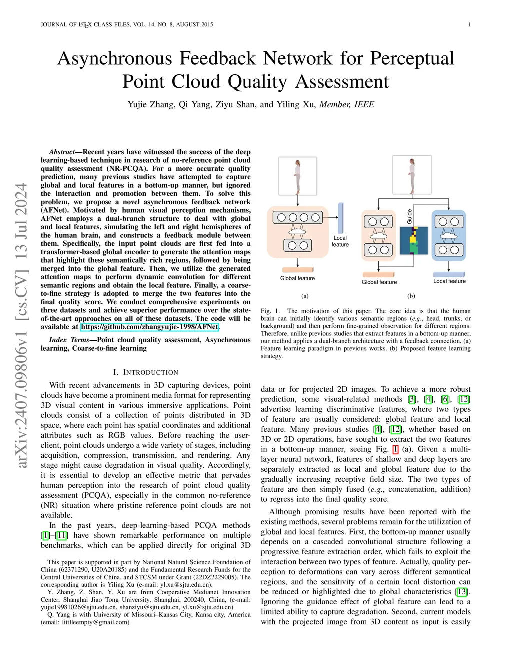 Asynchronous Feedback Network for Perceptual Point Cloud Quality