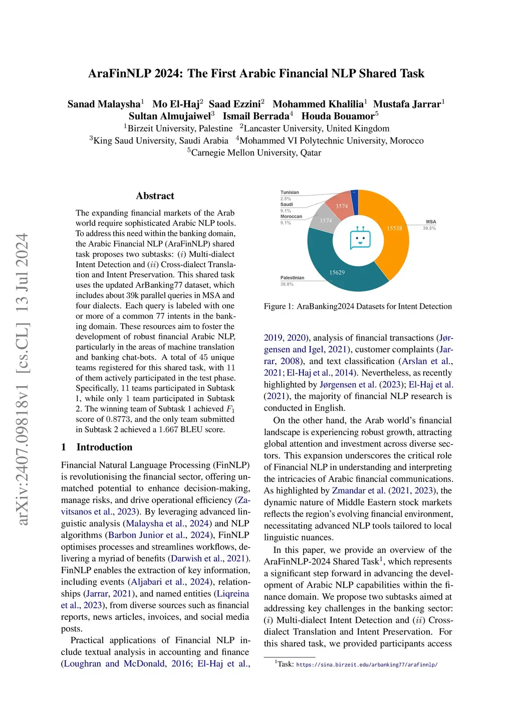 AraFinNLP 2024: The First Arabic Financial NLP Shared Task