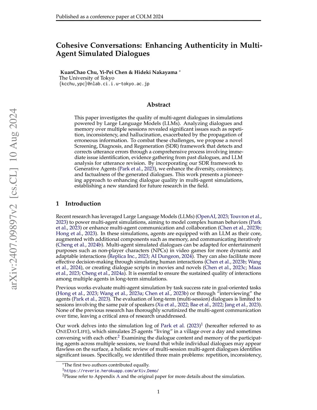 Cohesive Conversations: Enhancing Authenticity in Multi-Agent Simulated