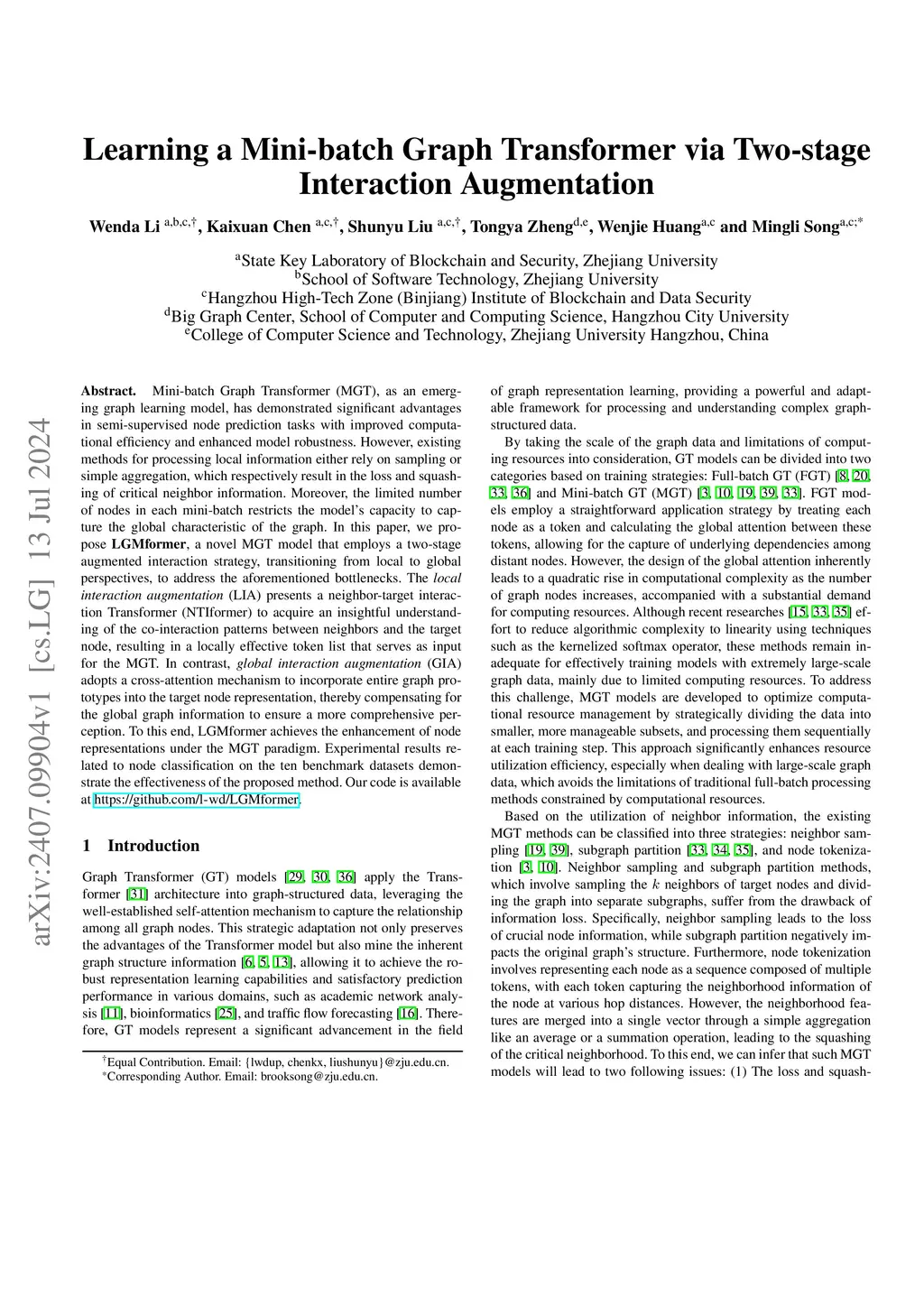 Learning a Mini-batch Graph Transformer via Two-stage Interaction