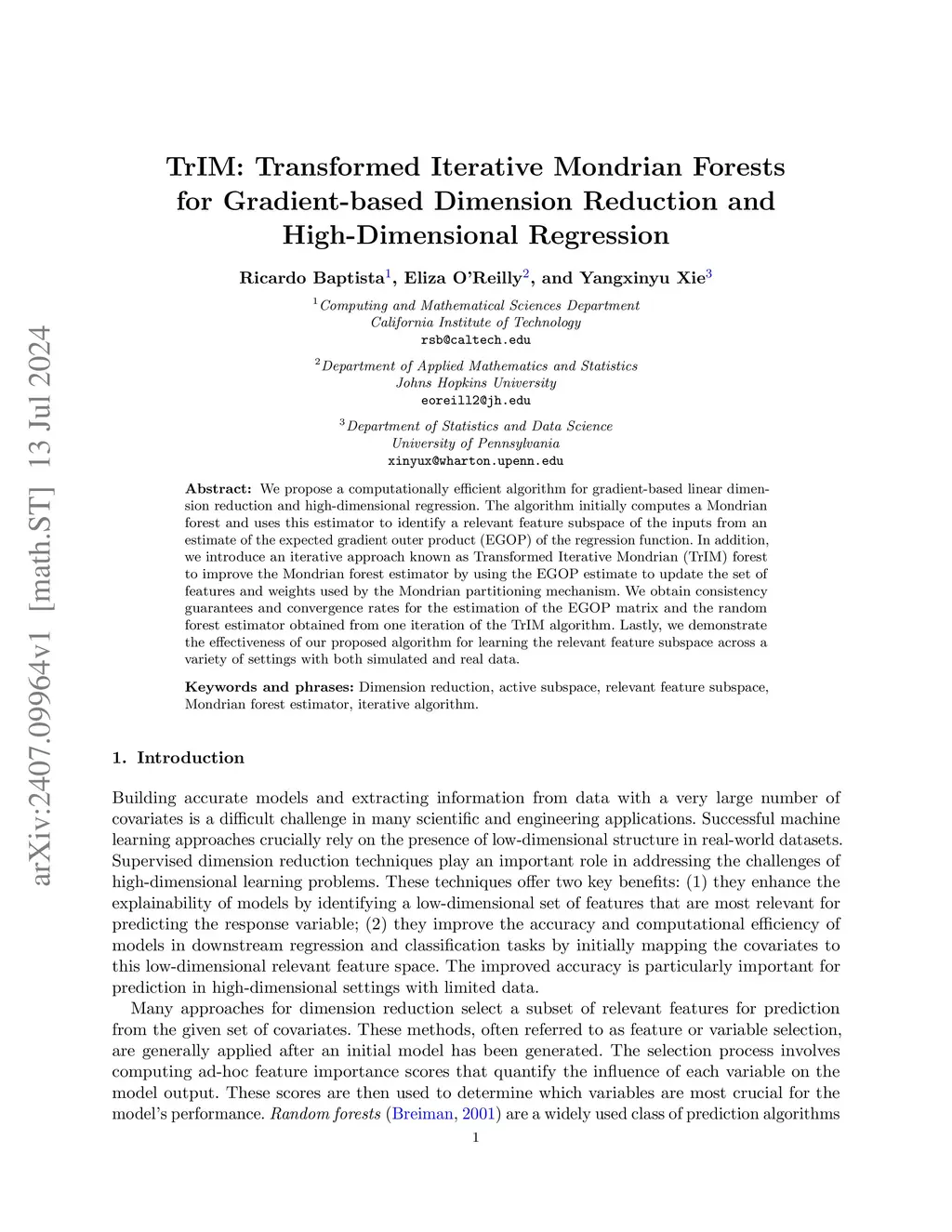 We propose a computationally efficient algorithm for gradient-based linear dimension reduction and high-dimensional regression. The algorithm initially computes a Mondrian forest and uses this estimator to identify a relevant feature subspace of the inputs from an estimate of the expected gradient outer product (EGOP) of the regression function. In addition, we introduce an iterative approach known as Transformed Iterative Mondrian (TrIM) forest to improve the Mondrian forest estimator by using the EGOP estimate to update the set of features and weights used by the Mondrian partitioning mechanism. We obtain consistency guarantees and convergence rates for the estimation of the EGOP matrix and the random forest estimator obtained from one iteration of the TrIM algorithm. Lastly, we demonstrate the effectiveness of our proposed algorithm for learning the relevant feature subspace across a variety of settings with both simulated and real data.