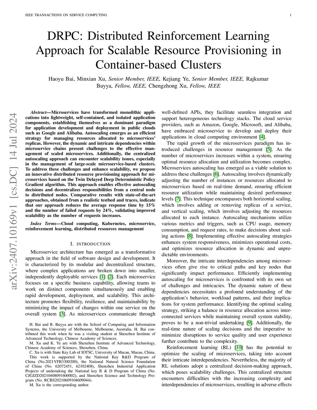 DRPC: Distributed Reinforcement Learning Approach for Scalable Resource