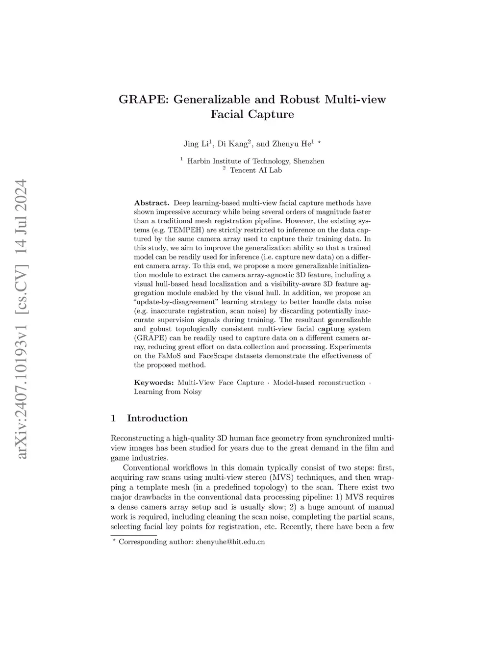 GRAPE: Generalizable and Robust Multi-view Facial Capture