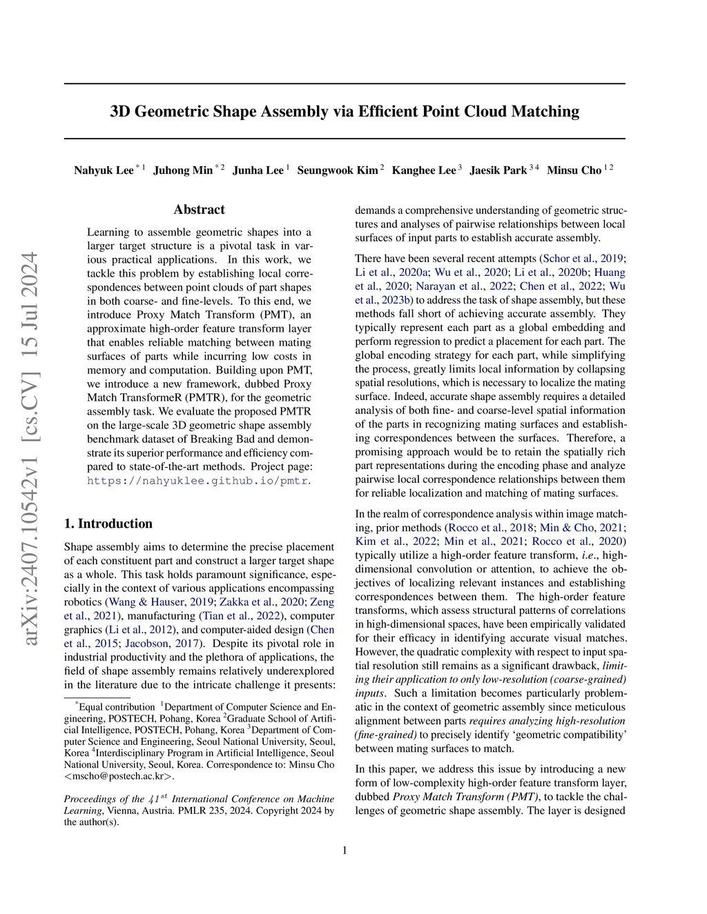 3D Geometric Shape Assembly via Efficient Point Cloud Matching