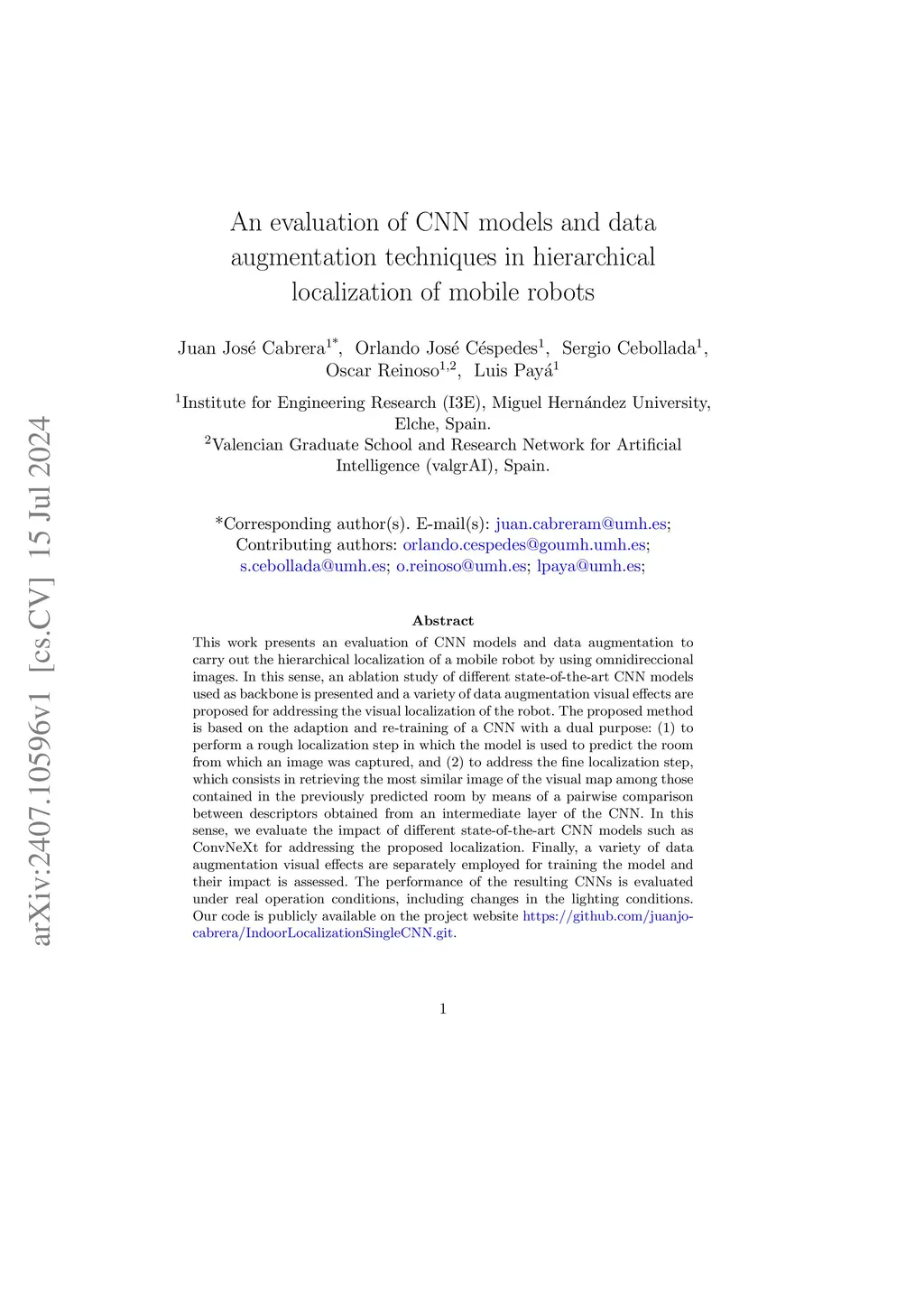 This work presents an evaluation of CNN models and data augmentation to carry out the hierarchical localization of a mobile robot by using omnidireccional images. In this sense, an ablation study of different state-of-the-art CNN models used as backbone is presented and a variety of data augmentation visual effects are proposed for addressing the visual localization of the robot. The proposed method is based on the adaption and re-training of a CNN with a dual purpose: (1) to perform a rough localization step in which the model is used to predict the room from which an image was captured, and (2) to address the fine localization step, which consists in retrieving the most similar image of the visual map among those contained in the previously predicted room by means of a pairwise comparison between descriptors obtained from an intermediate layer of the CNN. In this sense, we evaluate the impact of different state-of-the-art CNN models such as ConvNeXt for addressing the proposed localization. Finally, a variety of data augmentation visual effects are separately employed for training the model and their impact is assessed. The performance of the resulting CNNs is evaluated under real operation conditions, including changes in the lighting conditions. Our code is publicly available on the project website https://github.com/juanjo-cabrera/IndoorLocalizationSingleCNN.git