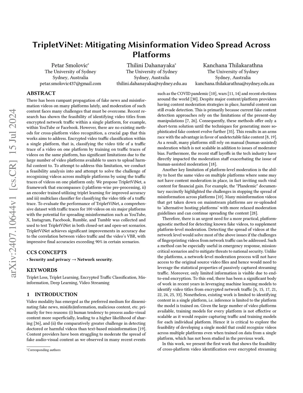 TripletViNet: Mitigating Misinformation Video Spread Across Platforms