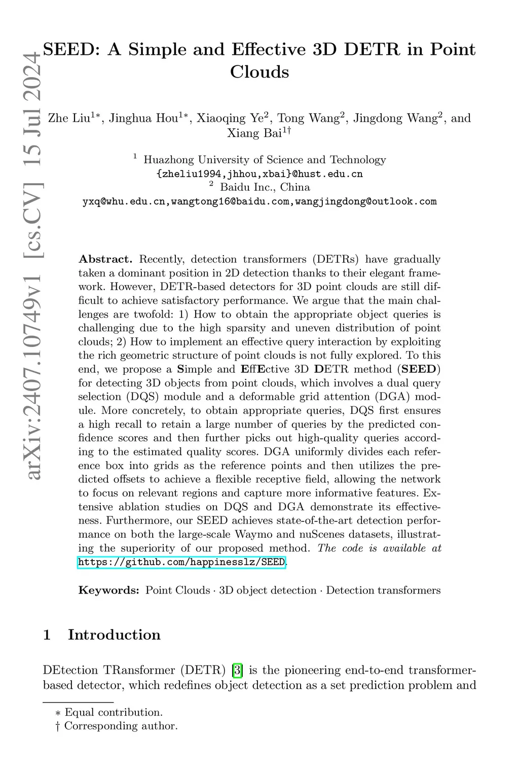 SEED: A Simple and Effective 3D DETR in Point Clouds