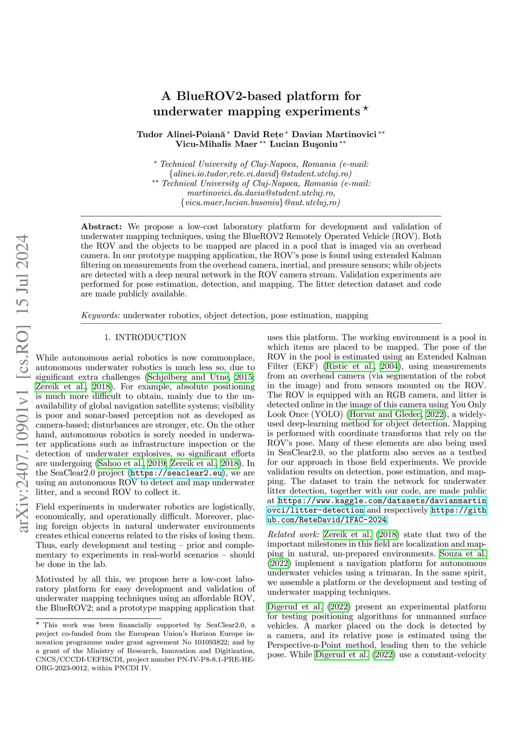 We propose a low-cost laboratory platform for development and validation of underwater mapping techniques, using the BlueROV2 Remotely Operated Vehicle (ROV). Both the ROV and the objects to be mapped are placed in a pool that is imaged via an overhead camera. In our prototype mapping application, the ROV's pose is found using extended Kalman filtering on measurements from the overhead camera, inertial, and pressure sensors; while objects are detected with a deep neural network in the ROV camera stream. Validation experiments are performed for pose estimation, detection, and mapping. The litter detection dataset and code are made publicly available.