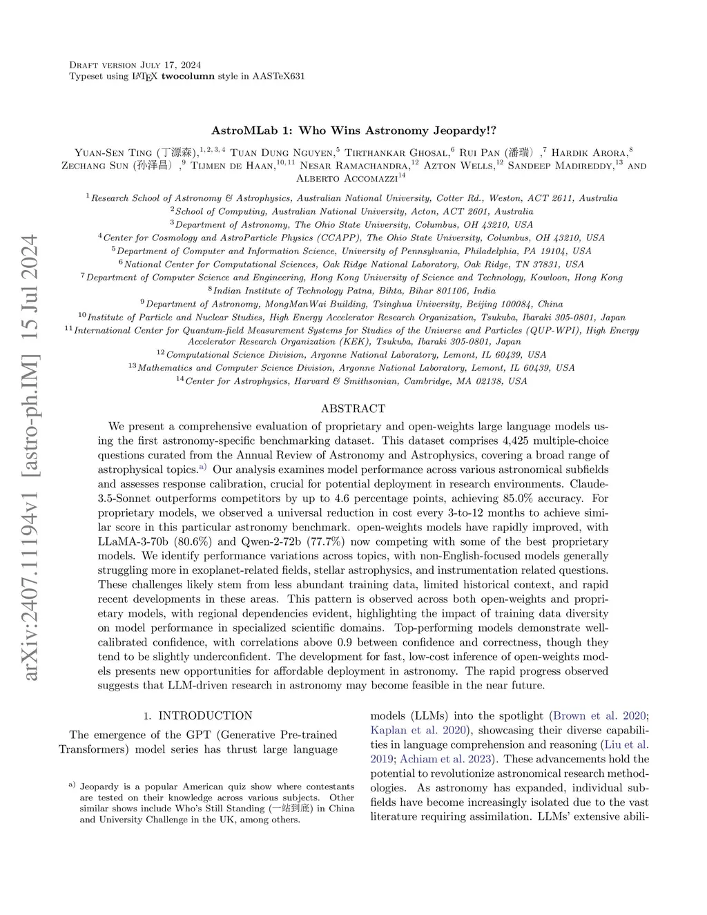 AstroMLab 1: Who Wins Astronomy Jeopardy!?