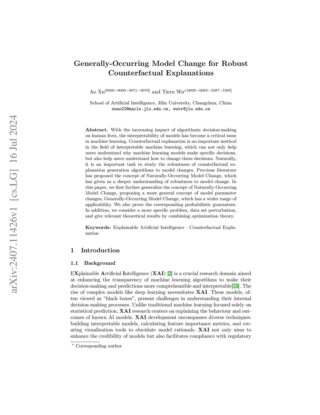 With the increasing impact of algorithmic decision-making on human lives, the interpretability of models has become a critical issue in machine learning. Counterfactual explanation is an important method in the field of interpretable machine learning, which can not only help users understand why machine learning models make specific decisions, but also help users understand how to change these decisions. Naturally, it is an important task to study the robustness of counterfactual explanation generation algorithms to model changes. Previous literature has proposed the concept of Naturally-Occurring Model Change, which has given us a deeper understanding of robustness to model change. In this paper, we first further generalize the concept of Naturally-Occurring Model Change, proposing a more general concept of model parameter changes, Generally-Occurring Model Change, which has a wider range of applicability. We also prove the corresponding probabilistic guarantees. In addition, we consider a more specific problem, data set perturbation, and give relevant theoretical results by combining optimization theory.