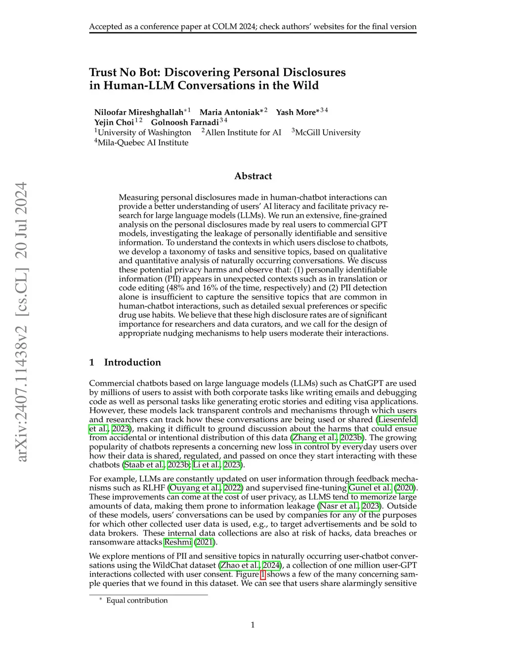 Trust No Bot: Discovering Personal Disclosures in Human-LLM