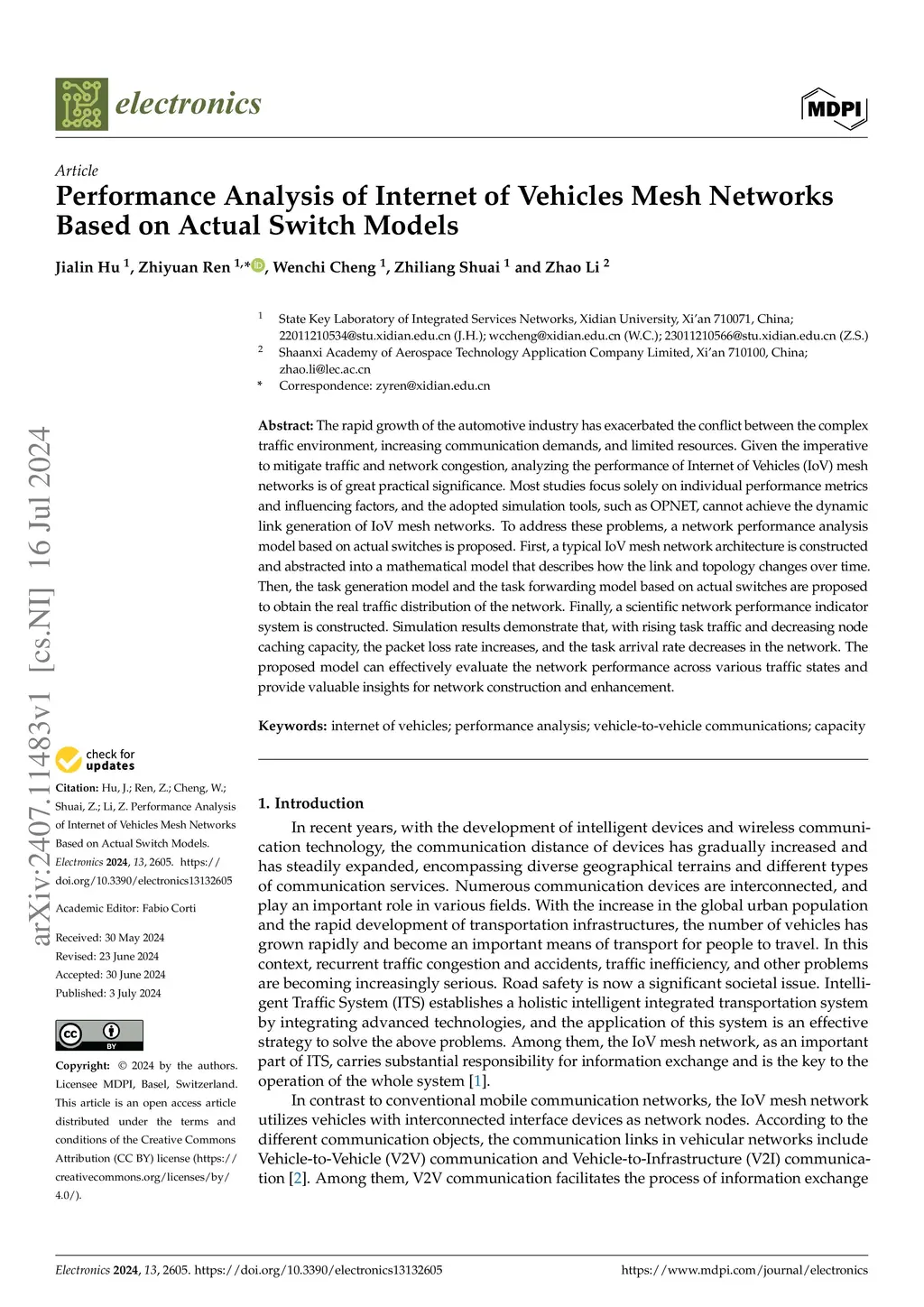 Performance Analysis of Internet of Vehicles Mesh Networks Based on
