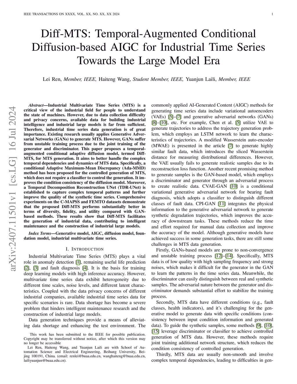Diff-MTS: Temporal-Augmented Conditional Diffusion-based AIGC for