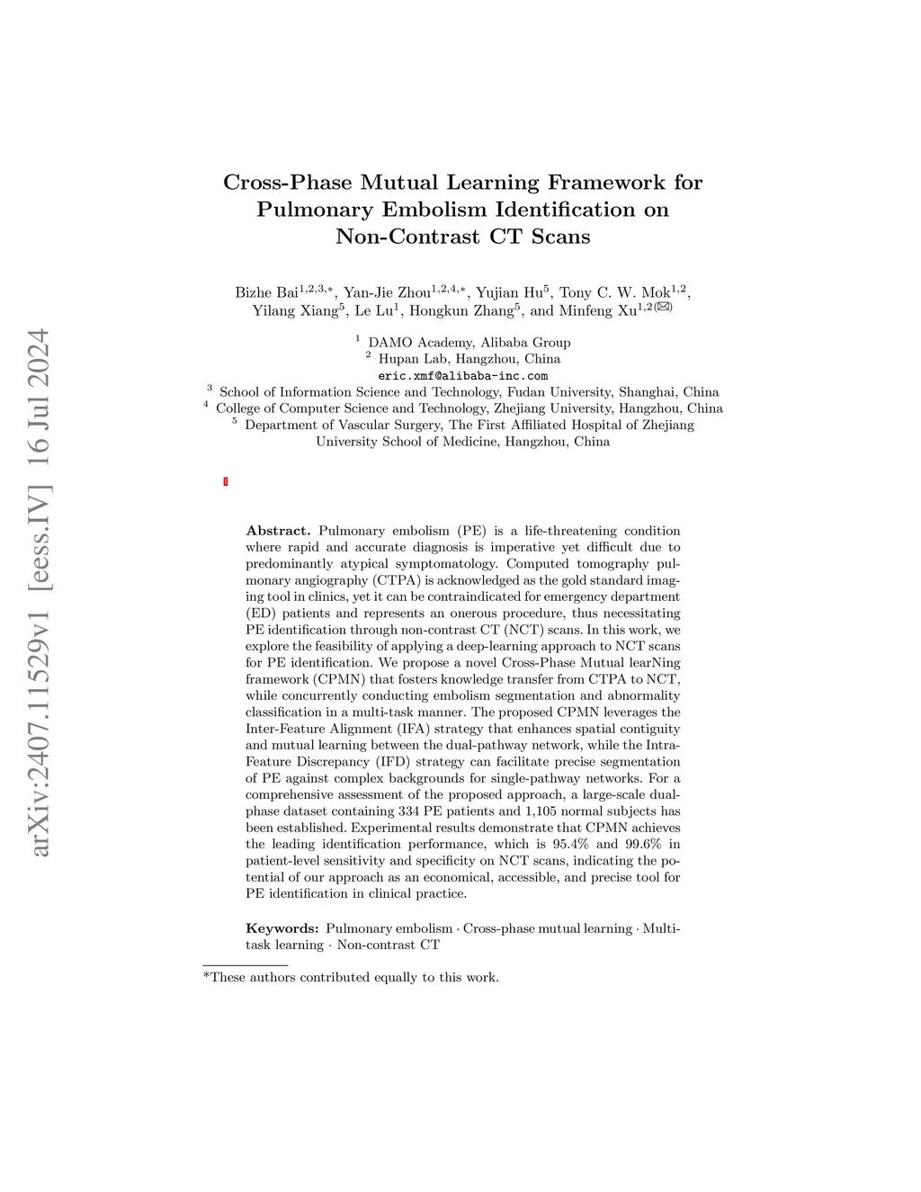 Cross-Phase Mutual Learning Framework for Pulmonary Embolism