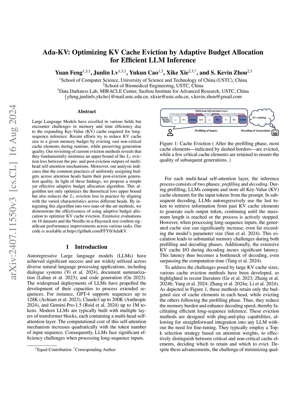 Ada-KV: Optimizing KV Cache Eviction by Adaptive Budget Allocation for Efficient LLM Inference