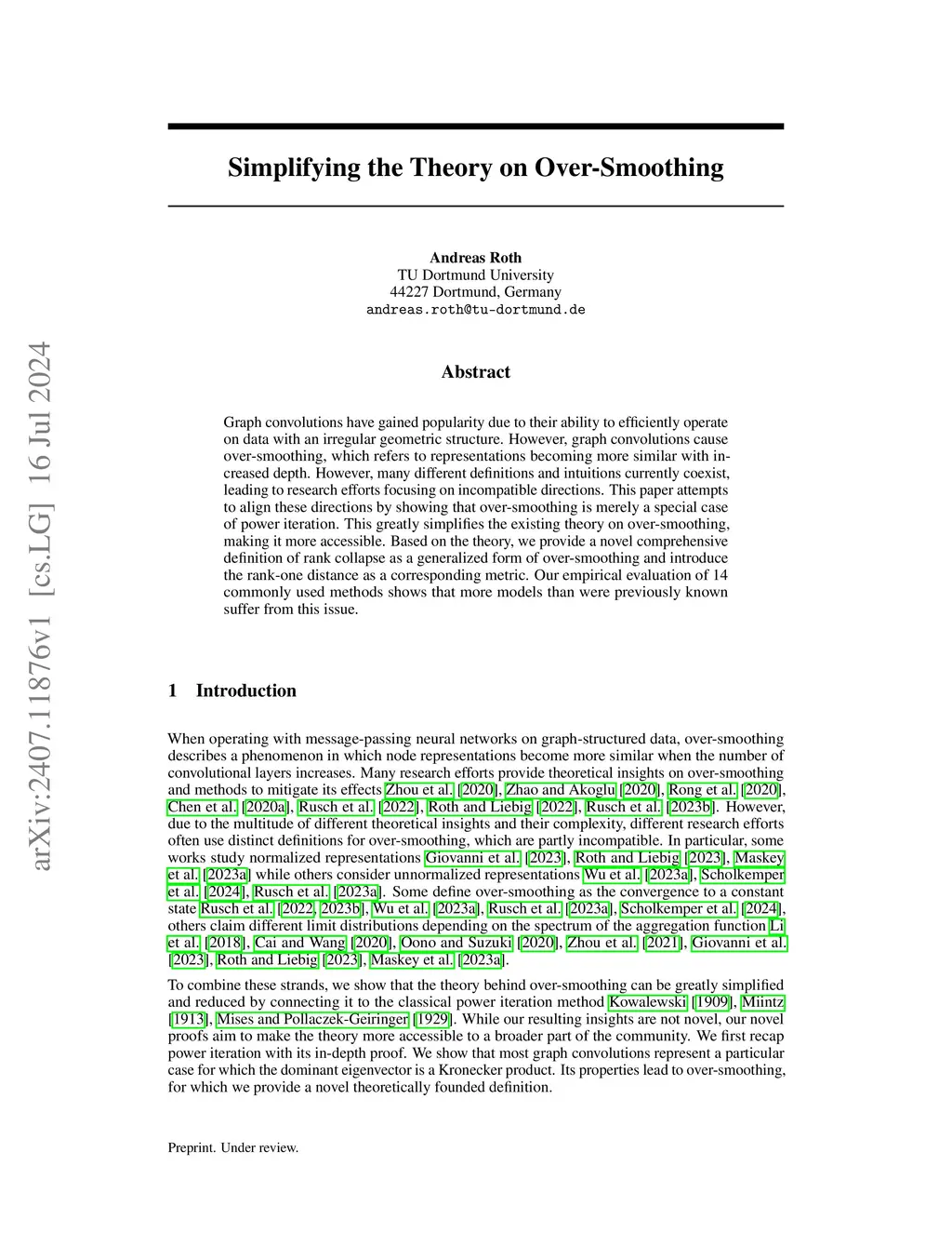 Graph convolutions have gained popularity due to their ability to efficiently operate on data with an irregular geometric structure. However, graph convolutions cause over-smoothing, which refers to representations becoming more similar with increased depth. However, many different definitions and intuitions currently coexist, leading to research efforts focusing on incompatible directions. This paper attempts to align these directions by showing that over-smoothing is merely a special case of power iteration. This greatly simplifies the existing theory on over-smoothing, making it more accessible. Based on the theory, we provide a novel comprehensive definition of rank collapse as a generalized form of over-smoothing and introduce the rank-one distance as a corresponding metric. Our empirical evaluation of 14 commonly used methods shows that more models than were previously known suffer from this issue.