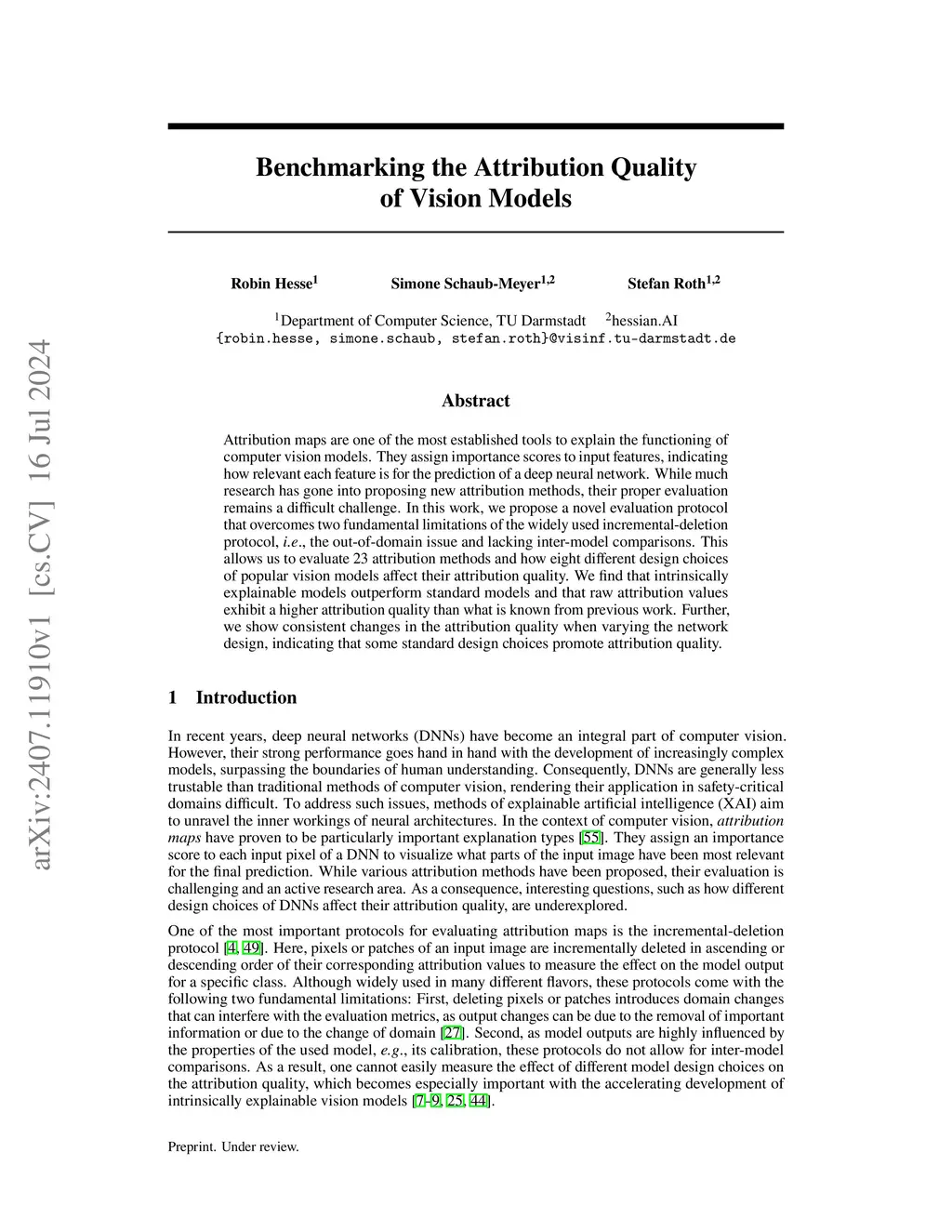 Attribution maps are one of the most established tools to explain the functioning of computer vision models. They assign importance scores to input features, indicating how relevant each feature is for the prediction of a deep neural network. While much research has gone into proposing new attribution methods, their proper evaluation remains a difficult challenge. In this work, we propose a novel evaluation protocol that overcomes two fundamental limitations of the widely used incremental-deletion protocol, i.e., the out-of-domain issue and lacking inter-model comparisons. This allows us to evaluate 23 attribution methods and how eight different design choices of popular vision models affect their attribution quality. We find that intrinsically explainable models outperform standard models and that raw attribution values exhibit a higher attribution quality than what is known from previous work. Further, we show consistent changes in the attribution quality when varying the network design, indicating that some standard design choices promote attribution quality.