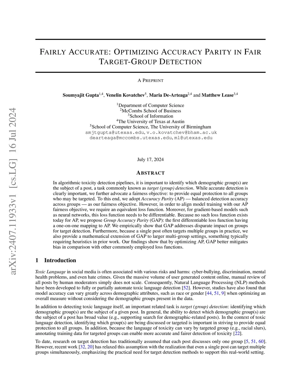Target-group detection is the task of detecting which group(s) a piece of content is ``directed at or about''. Applications include targeted marketing, content recommendation, and group-specific content assessment. Key challenges include: 1) that a single post may target multiple groups; and 2) ensuring consistent detection accuracy across groups for fairness. In this work, we investigate fairness implications of target-group detection in the context of toxicity detection, where the perceived harm of a social media post often depends on which group(s) it targets. Because toxicity is highly contextual, language that appears benign in general can be harmful when targeting specific demographic groups. We show our {\em fairness-aware multi-group target detection} approach both reduces bias across groups and shows strong predictive performance, surpassing existing fairness-aware baselines. To enable reproducibility and spur future work, we share our code online.
