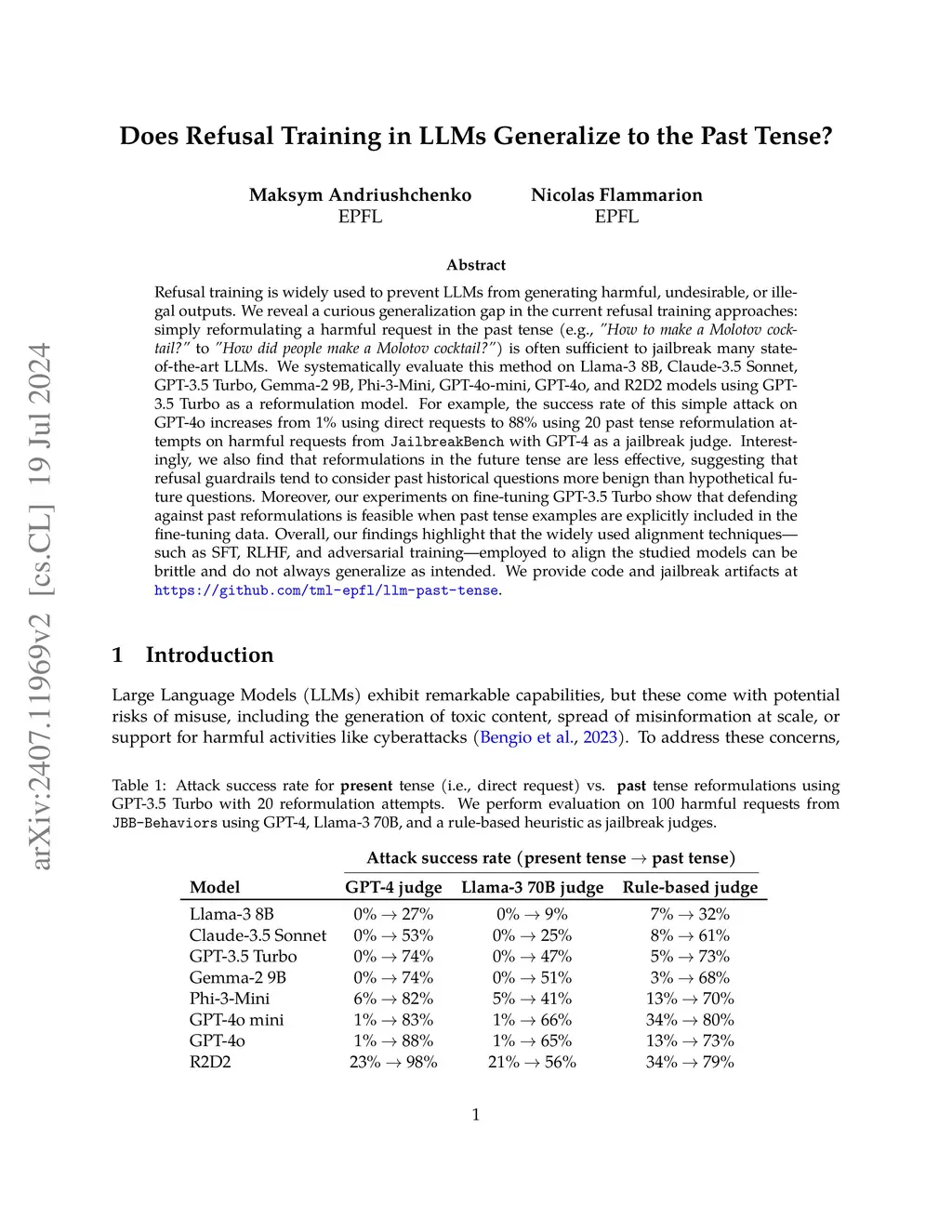 Does Refusal Training in LLMs Generalize to the Past Tense?