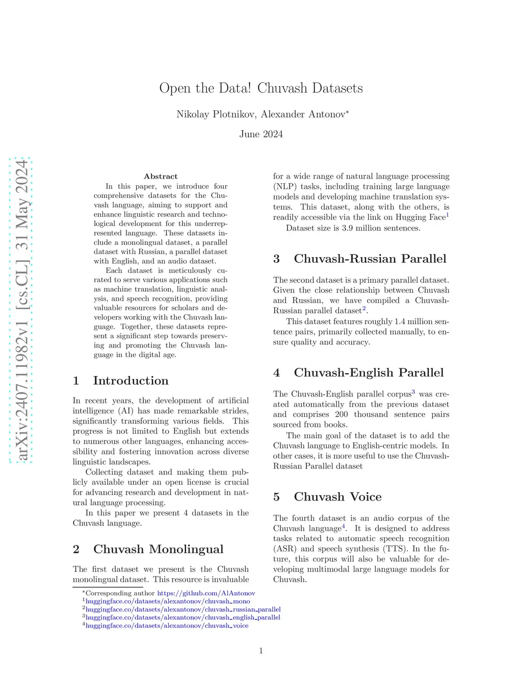 Open the Data! Chuvash Datasets