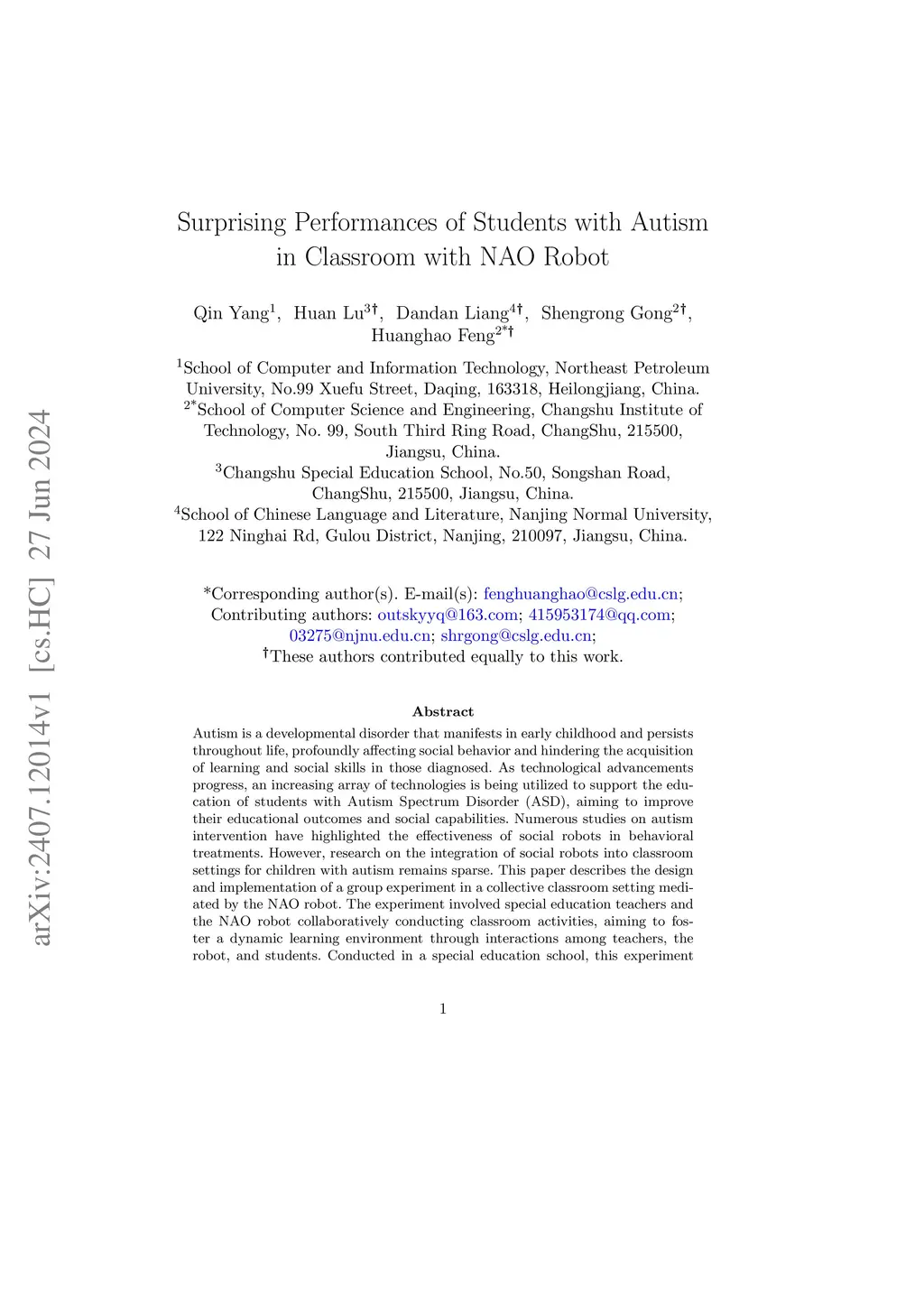 Autism is a developmental disorder that manifests in early childhood and persists throughout life, profoundly affecting social behavior and hindering the acquisition of learning and social skills in those diagnosed. As technological advancements progress, an increasing array of technologies is being utilized to support the education of students with Autism Spectrum Disorder (ASD), aiming to improve their educational outcomes and social capabilities. Numerous studies on autism intervention have highlighted the effectiveness of social robots in behavioral treatments. However, research on the integration of social robots into classroom settings for children with autism remains sparse. This paper describes the design and implementation of a group experiment in a collective classroom setting mediated by the NAO robot. The experiment involved special education teachers and the NAO robot collaboratively conducting classroom activities, aiming to foster a dynamic learning environment through interactions among teachers, the robot, and students. Conducted in a special education school, this experiment served as a foundational study in anticipation of extended robot-assisted classroom sessions. Data from the experiment suggest that ASD students in classrooms equipped with the NAO robot exhibited notably better performance compared to those in regular classrooms. The humanoid features and body language of the NAO robot captivated the students' attention, particularly during talent shows and command tasks, where students demonstrated heightened engagement and a decrease in stereotypical repetitive behaviors and irrelevant minor movements commonly observed in regular settings. Our preliminary findings indicate that the NAO robot significantly enhances focus and classroom engagement among students with ASD, potentially improving educational performance and fostering better social behaviors.