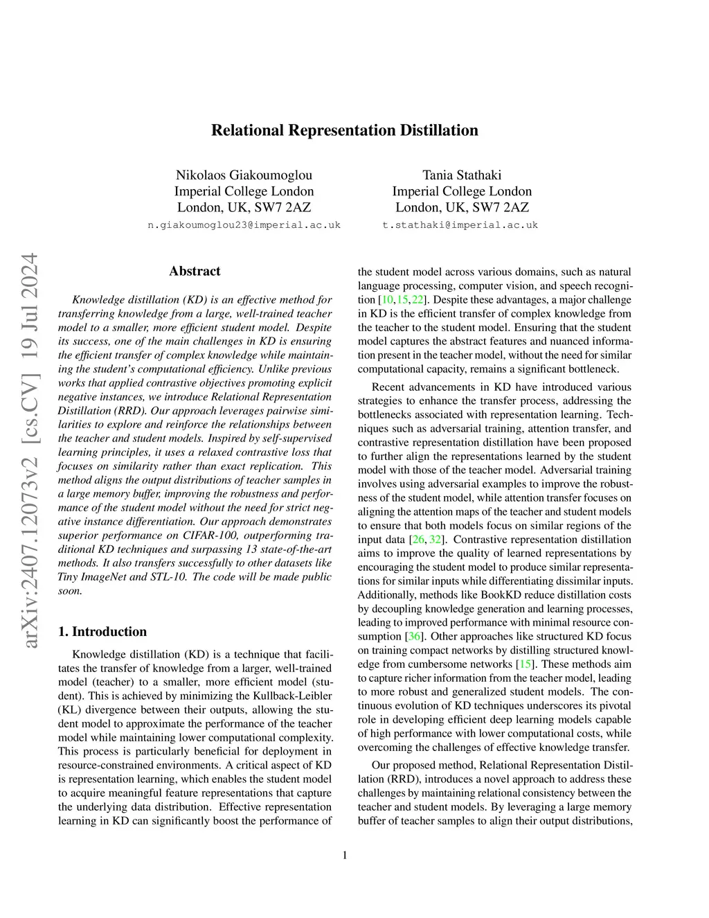 Relational Representation Distillation