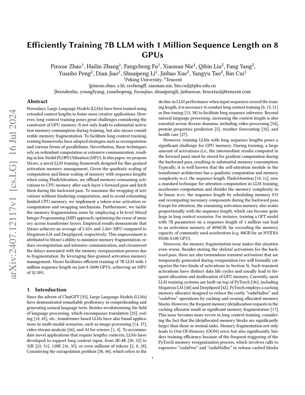 MEMO: Fine-grained Tensor Management For Ultra-long Context LLM Training