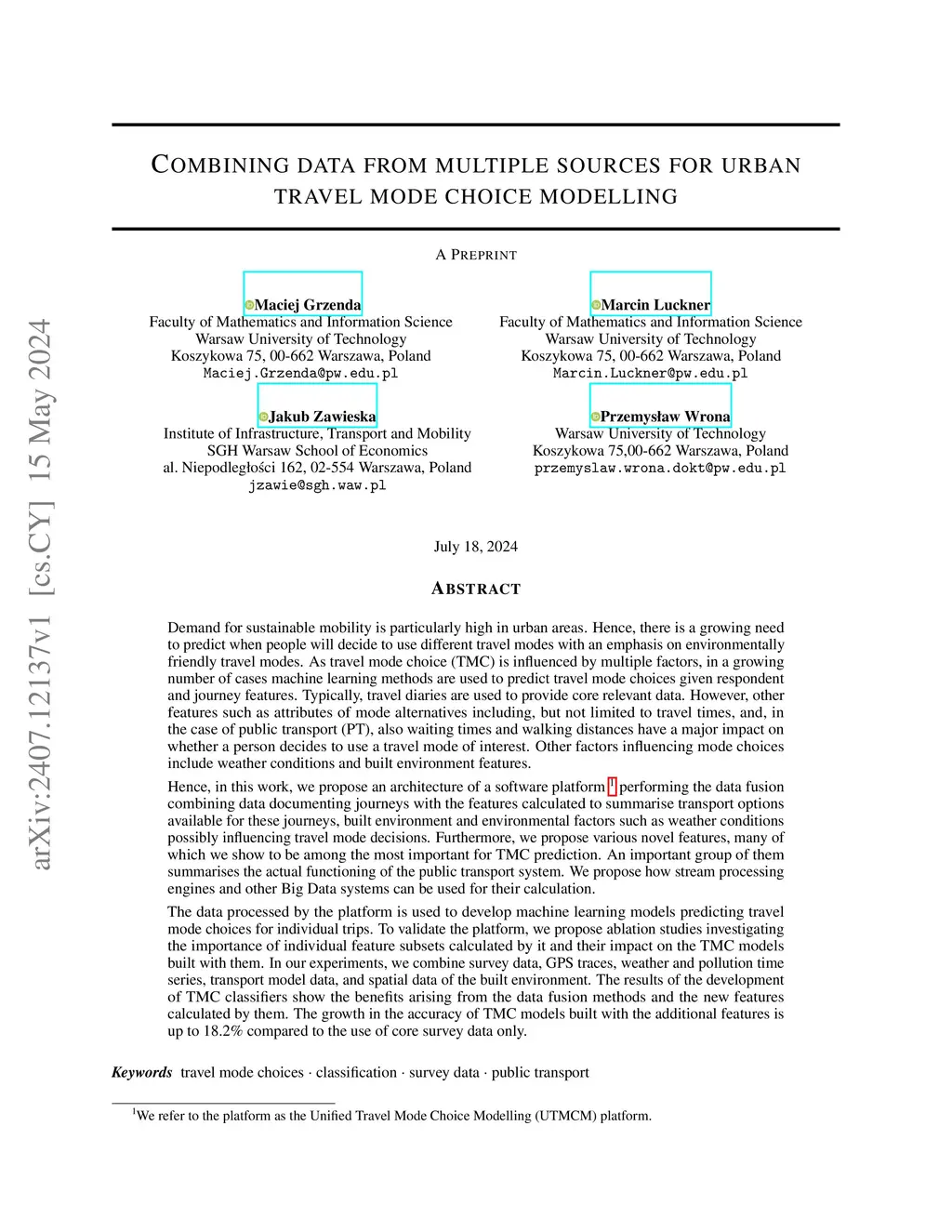 Combining data from multiple sources for urban travel mode choice
