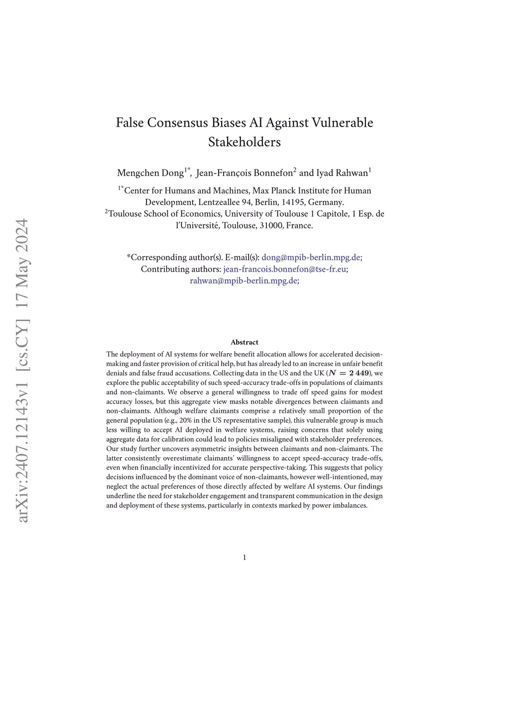 False consensus biases AI against vulnerable stakeholders