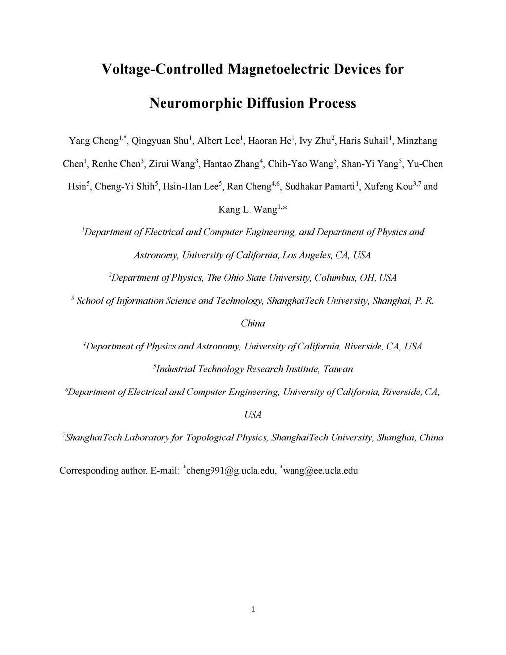 Voltage-Controlled Magnetoelectric Devices for Neuromorphic Diffusion Process