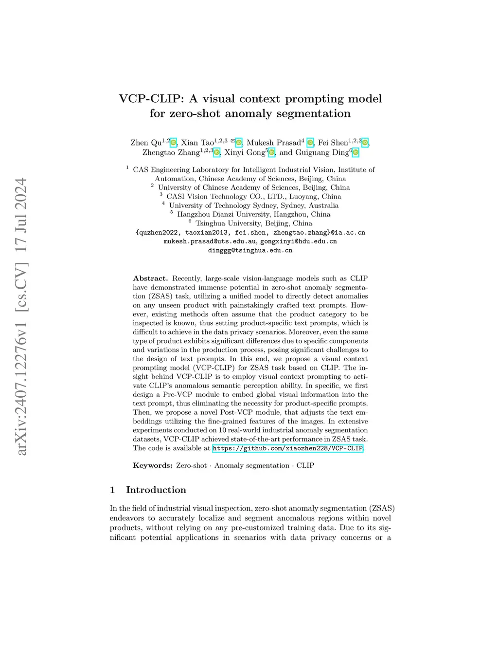 VCP-CLIP: A visual context prompting model for zero-shot anomaly