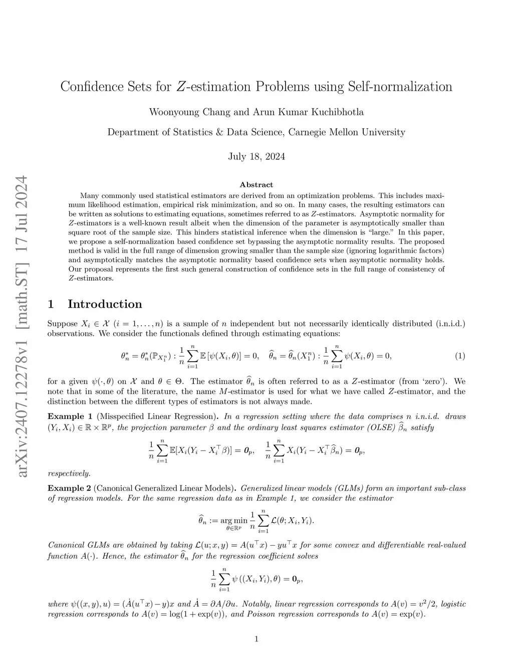 Confidence Sets for -estimation Problems using Self-normalization