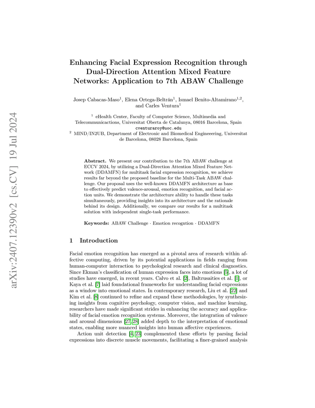 We present our contribution to the 7th ABAW challenge at ECCV 2024, by utilizing a Dual-Direction Attention Mixed Feature Network (DDAMFN) for multitask facial expression recognition, we achieve results far beyond the proposed baseline for the Multi-Task ABAW challenge. Our proposal uses the well-known DDAMFN architecture as base to effectively predict valence-arousal, emotion recognition, and facial action units. We demonstrate the architecture ability to handle these tasks simultaneously, providing insights into its architecture and the rationale behind its design. Additionally, we compare our results for a multitask solution with independent single-task performance.